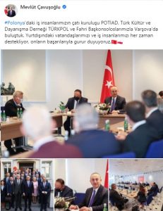 Bakan Çavuşoğlu, Polonya’da Türk iş insanlarıyla görüştü.